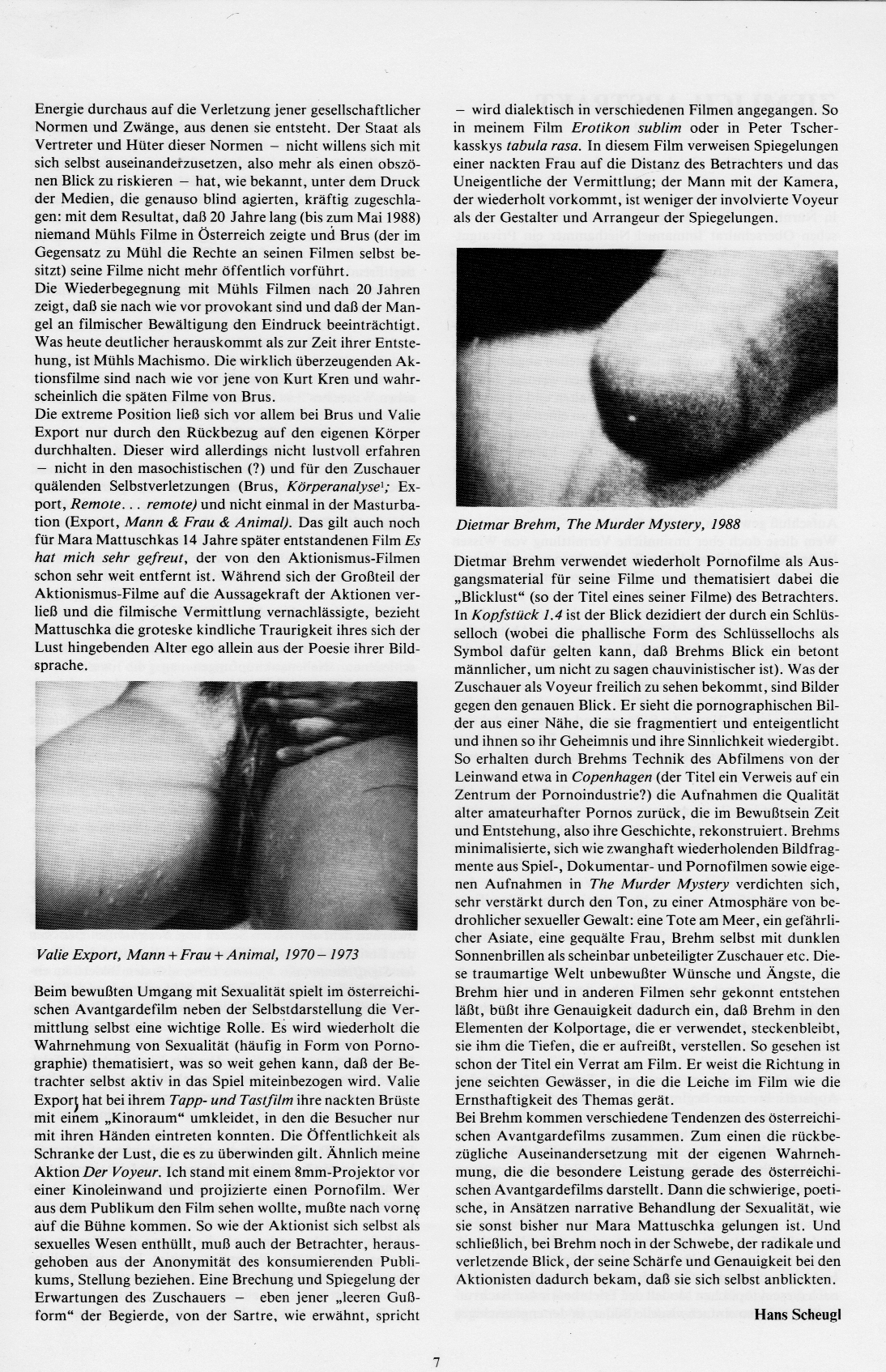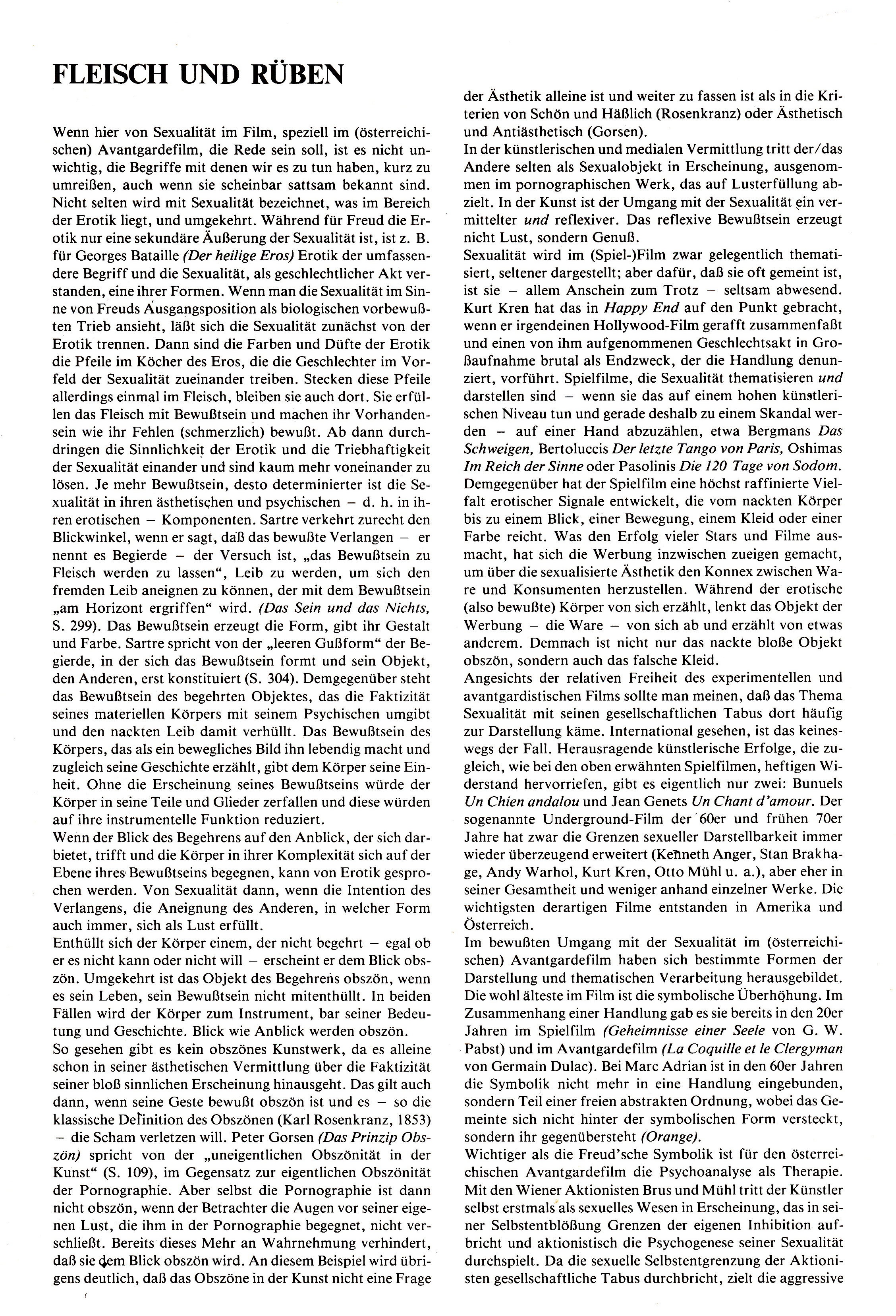 Fleisch und Rüben Broschüre zur Schau „Das Licht der Peripherie. Österreichische Avantgardefilm 1957-1988“. Museum des 20. Jahrhunderts. Wien 1988.
